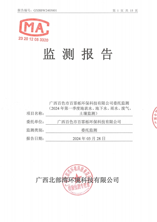广西百霏栎2024年第一季度环境监测报告